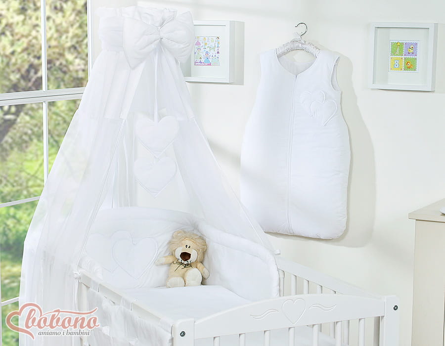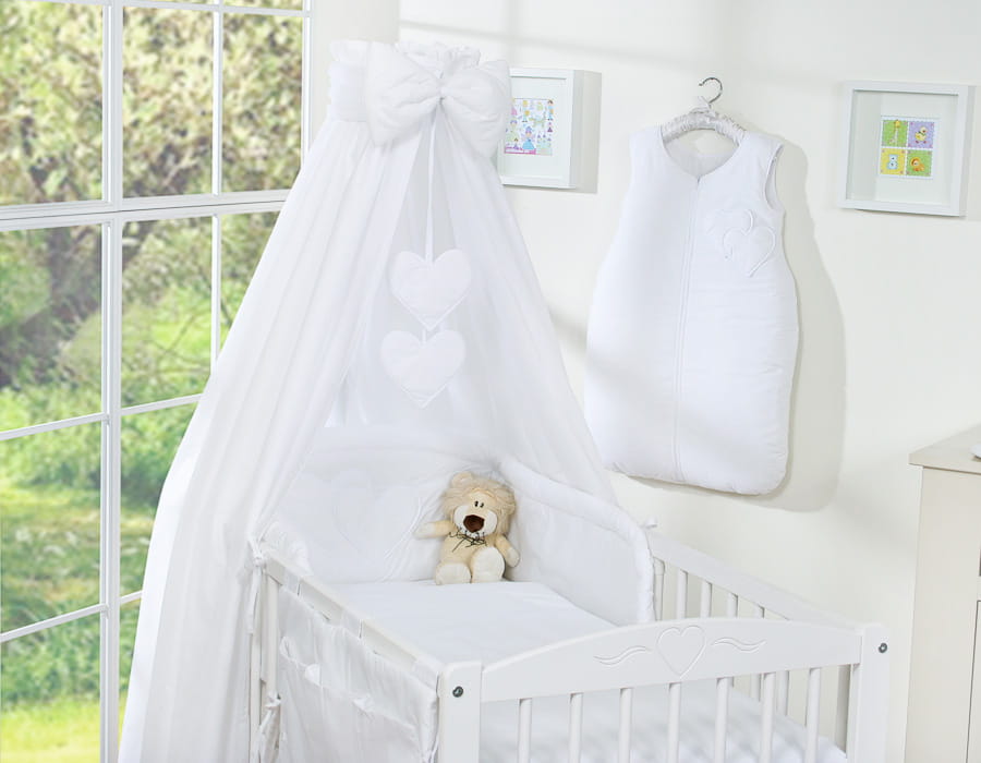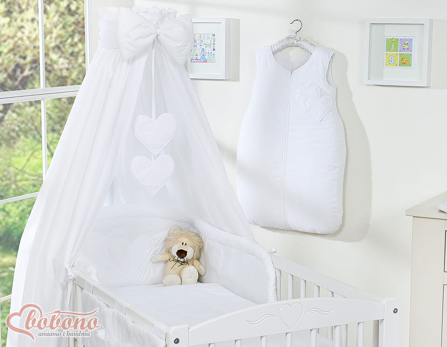 Pościel 5-cz 135x100 z baldachimem - Wiszące Serduszka białe