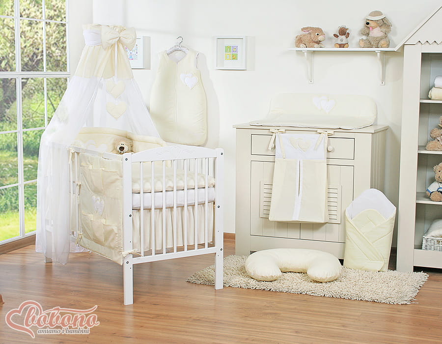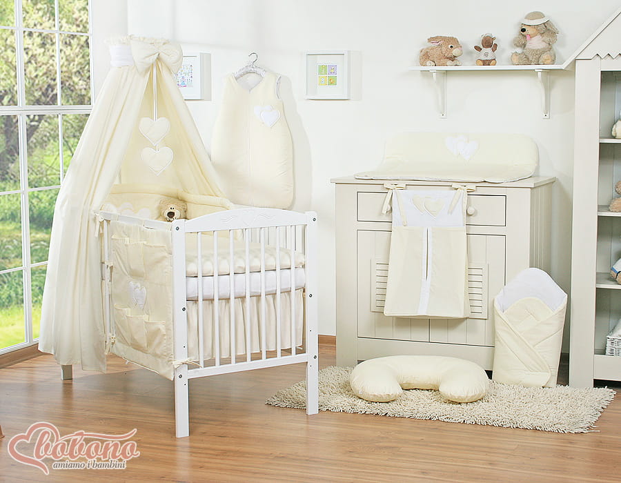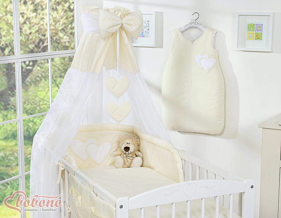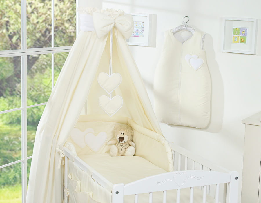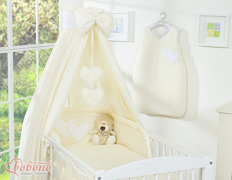 Pościel 5-cz 135x100 z baldachimem - Wiszące Serduszka kremowa