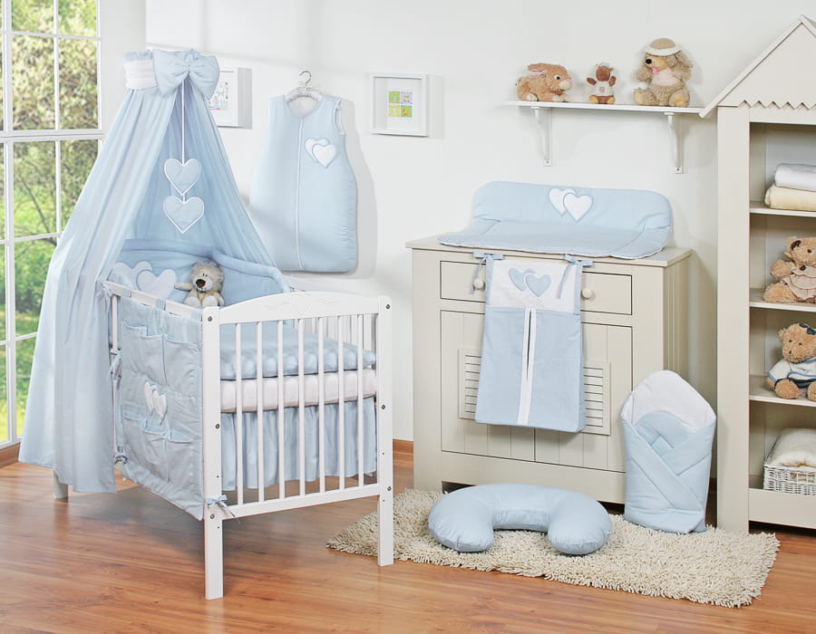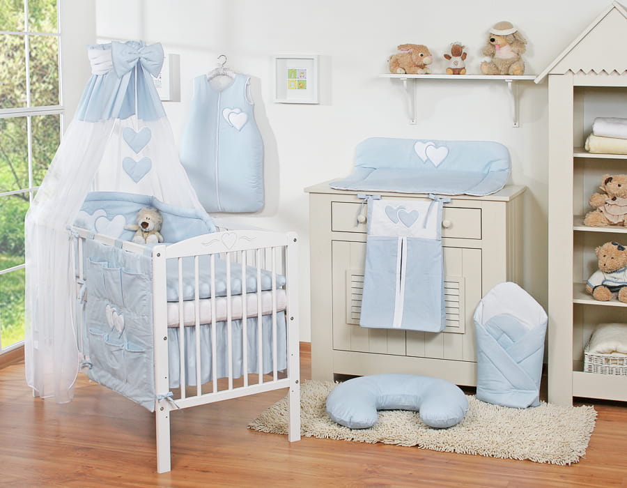 Niepowtarzalny zestaw pościeli 5- elementowej z przepiękną aplikacją serduszek. Nie podrażnia delikatnej skóry dziecka. Wysoki ochraniacz doskonale amortyzuje i ochroni Twoje Maleństwo przed twardymi szczebelkami łóżeczka. Wykonana z trwałej 100% atestowanej bawełny, bezpiecznej dla delikatnej skóry dziecka. W tej pościeli Wasze dziecko będzie spało spokojnie i bezpiecznie.