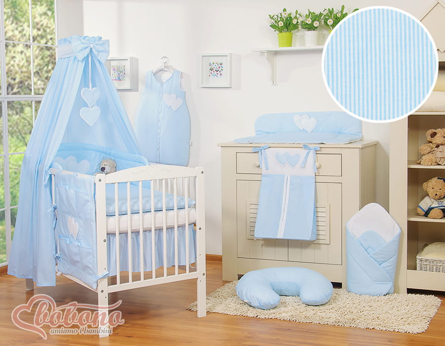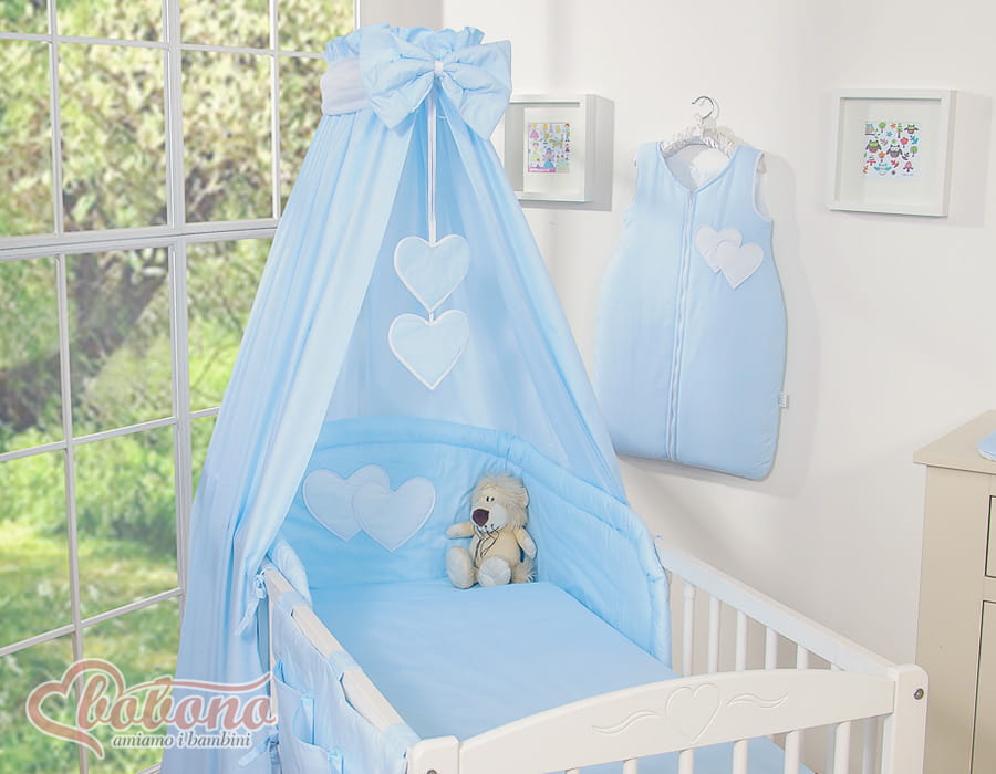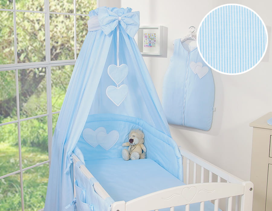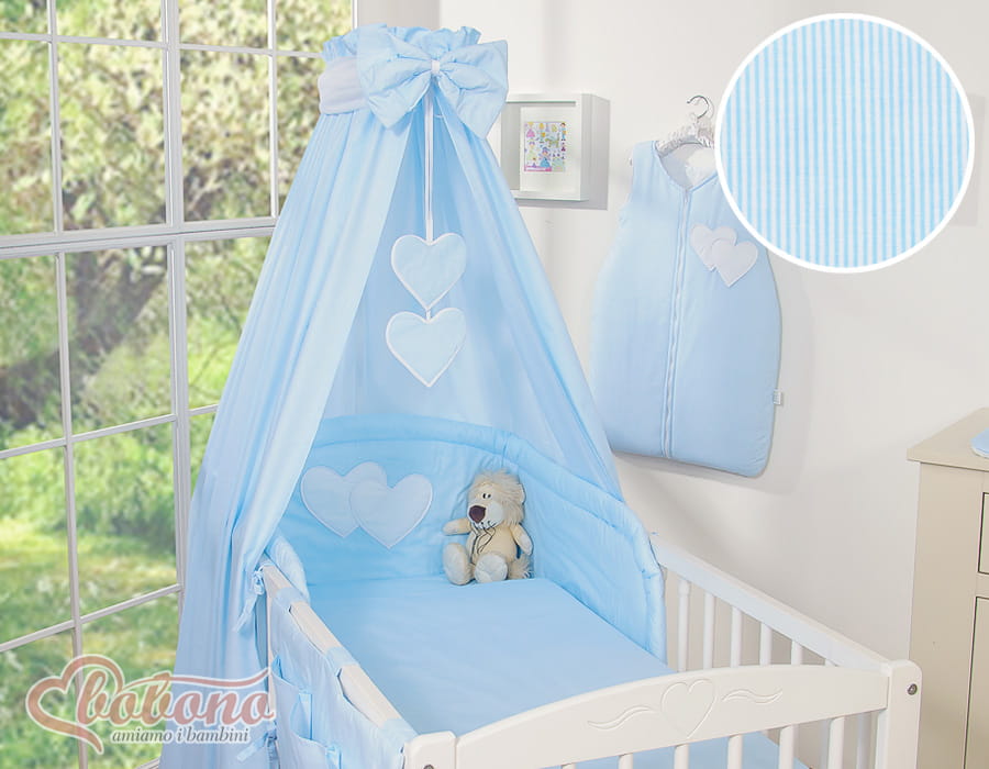 Pościel 5-cz 135x100 z baldachimem - Wiszące Serduszka paseczki niebieskie