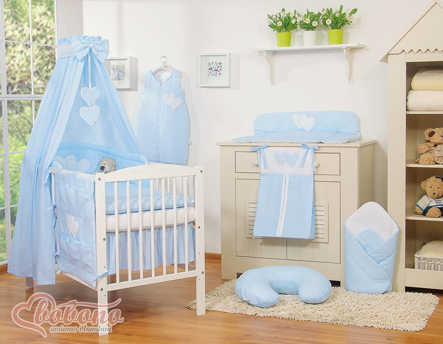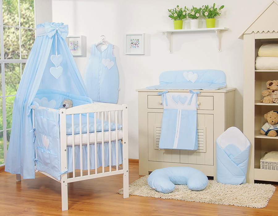 Niepowtarzalny zestaw pościeli 5- elementowej z przepiękną aplikacją serduszek. Nie podrażnia delikatnej skóry dziecka. Wysoki ochraniacz doskonale amortyzuje i ochroni Twoje Maleństwo przed twardymi szczebelkami łóżeczka. Wykonana z trwałej 100% atestowanej bawełny, bezpiecznej dla delikatnej skóry dziecka. W tej pościeli Wasze dziecko będzie spało spokojnie i bezpiecznie.