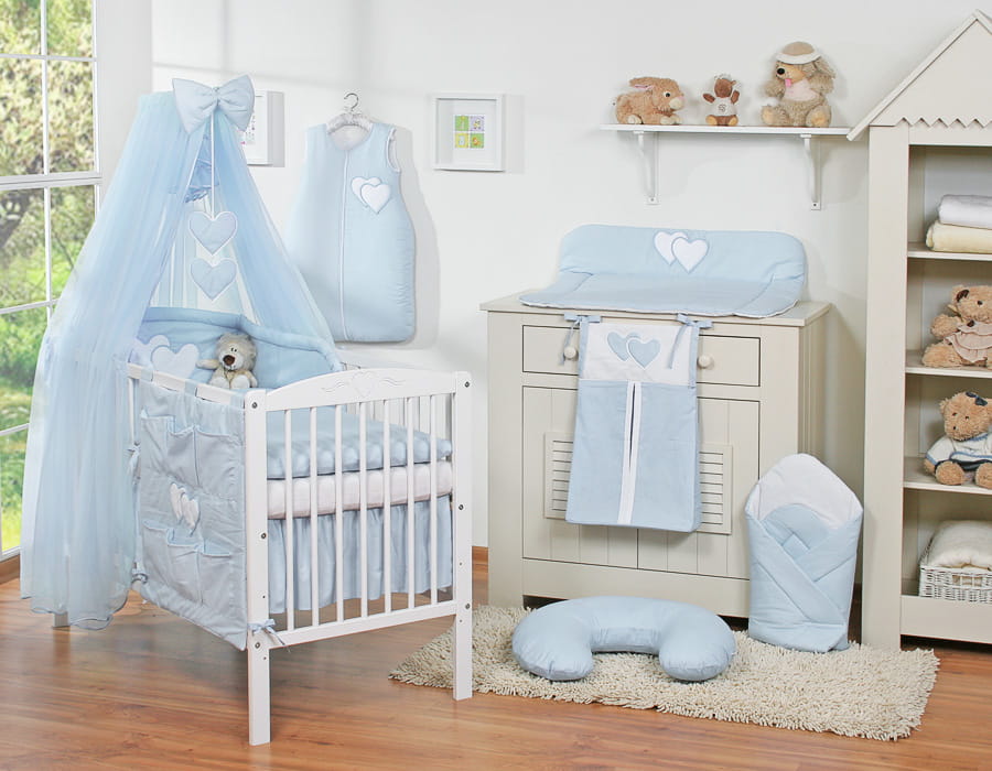 Niepowtarzalny zestaw pościeli 5- elementowej z przepiękną aplikacją serduszek. Nie podrażnia delikatnej skóry dziecka. Wysoki ochraniacz doskonale amortyzuje i ochroni Twoje Maleństwo przed twardymi szczebelkami łóżeczka. Wykonana z trwałej 100% atestowanej bawełny, bezpiecznej dla delikatnej skóry dziecka. W tej pościeli Wasze dziecko będzie spało spokojnie i bezpiecznie.