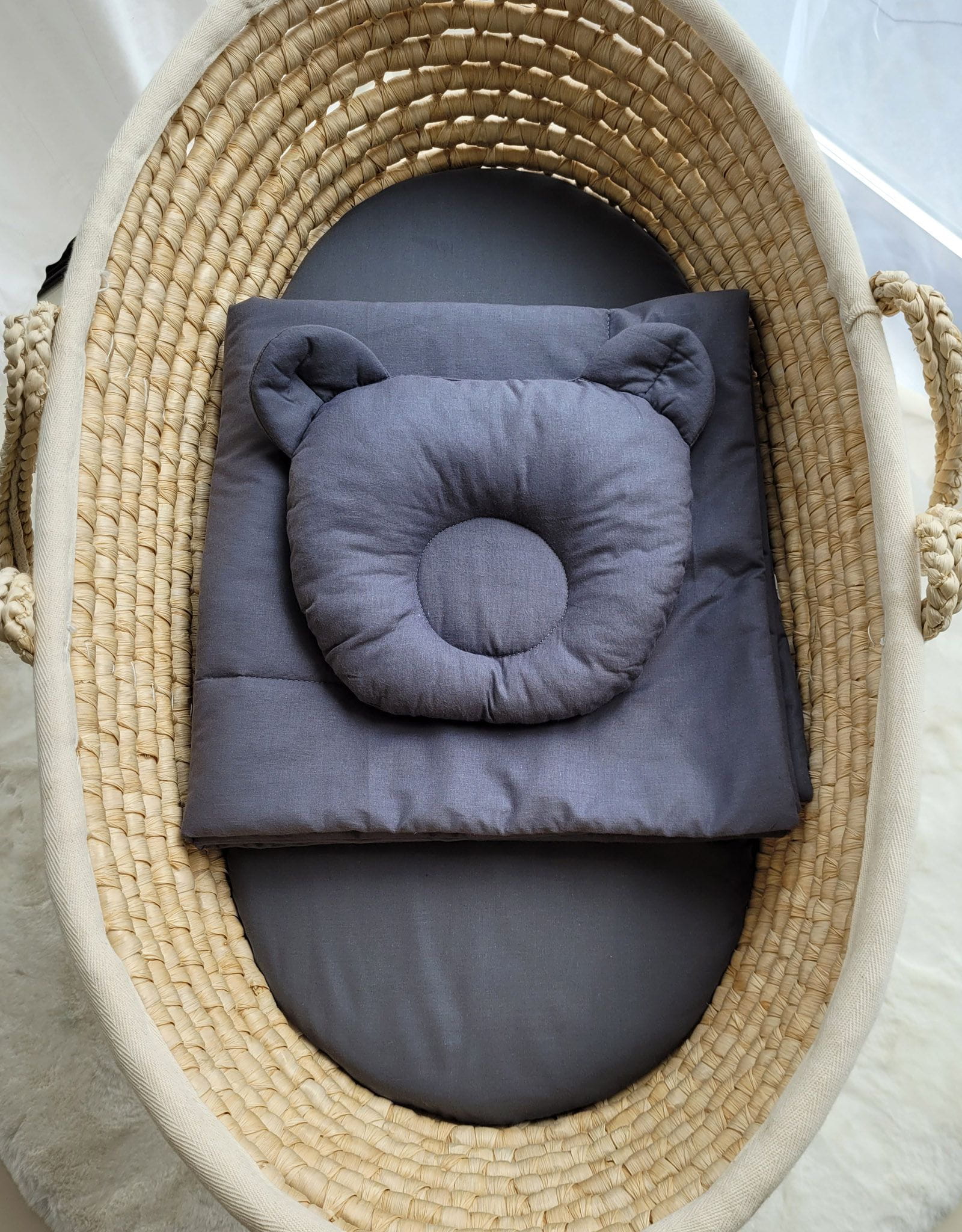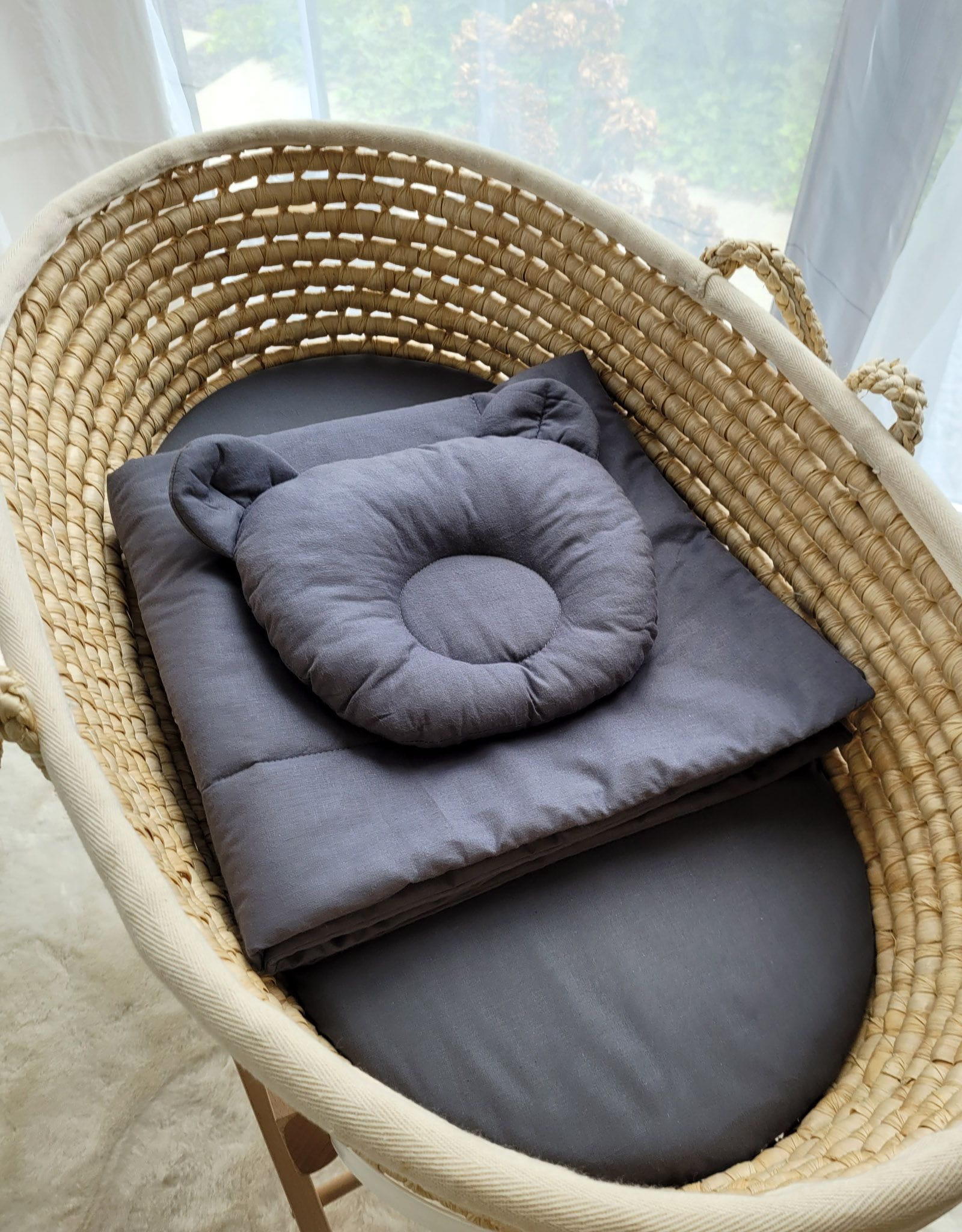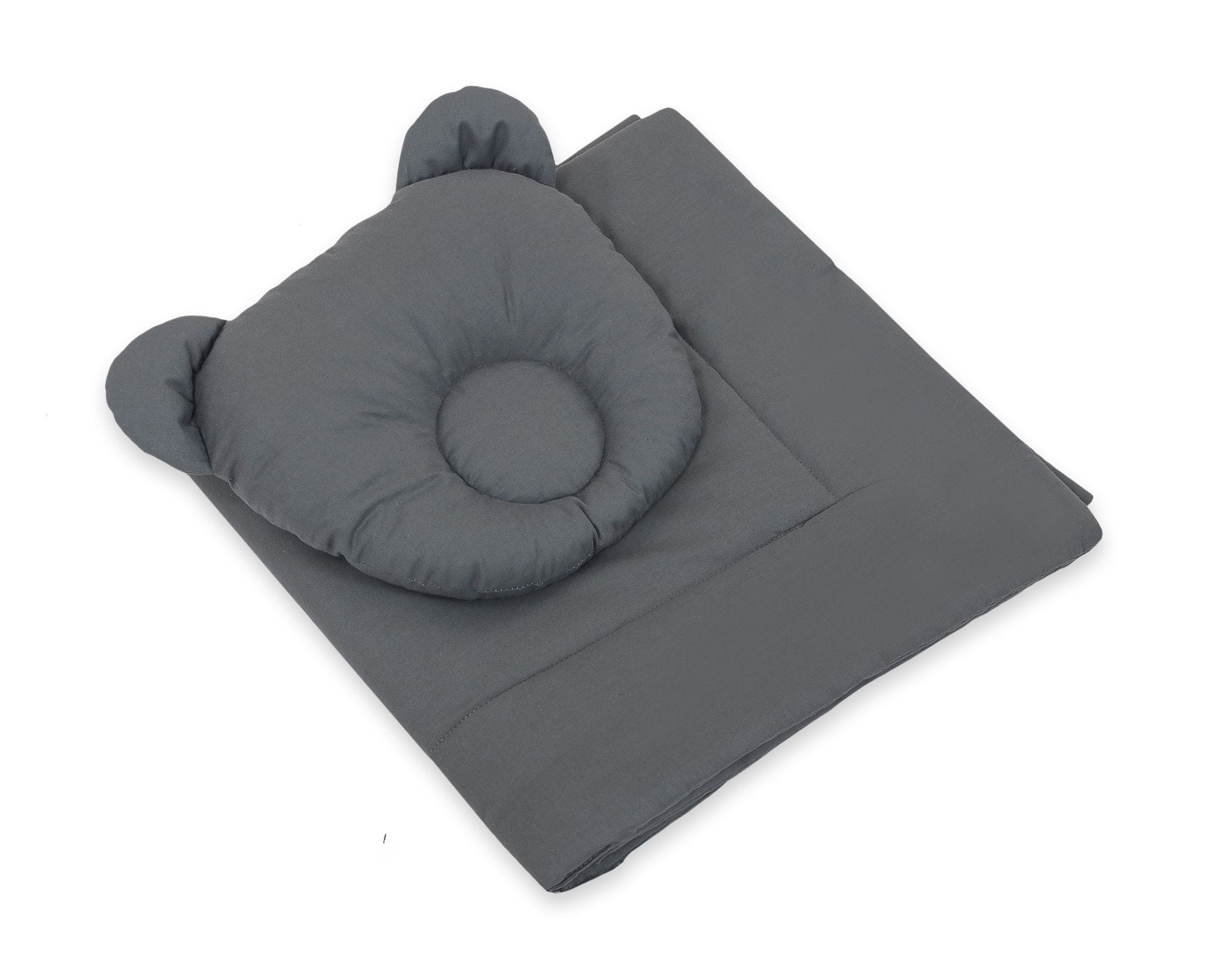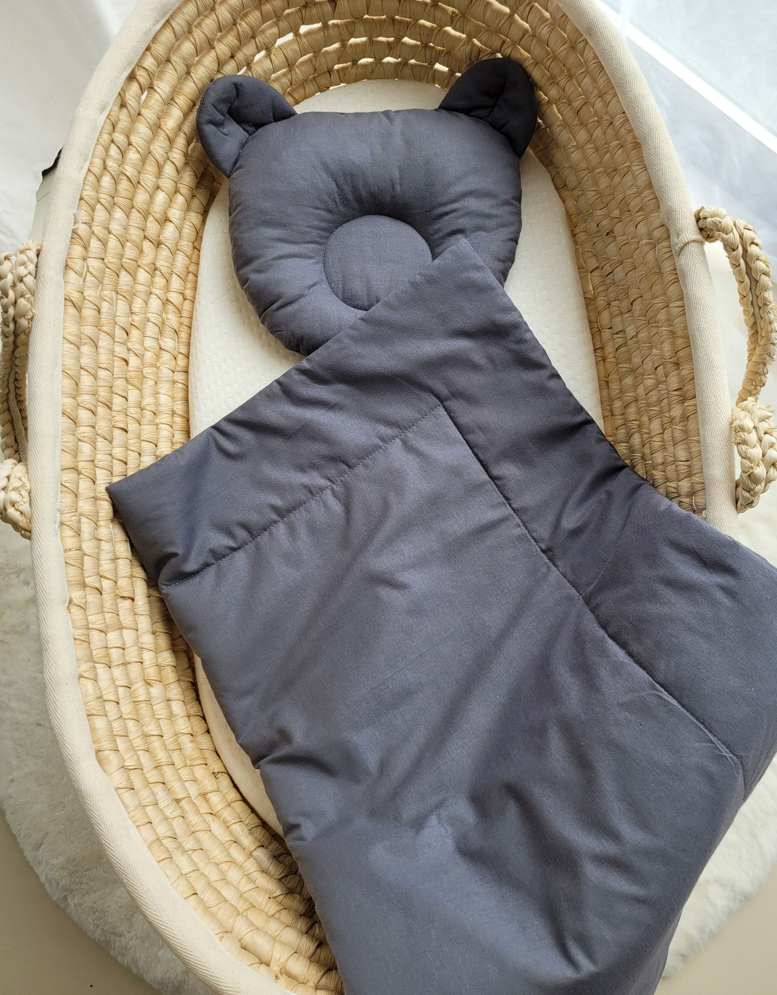 Pościel dla niemowląt z wypełnieniem kołderka i poduszka profilowana Miś - zestaw 2cz. - antracyt