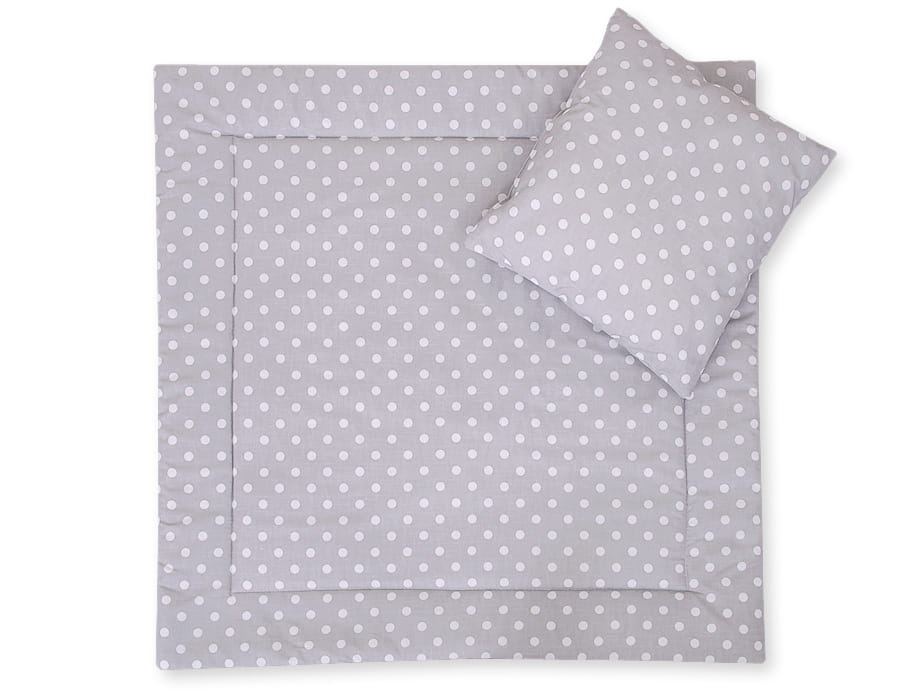 Pościel do wózka z wypełnieniem kołderka i poduszka - Białe grochy na szarym