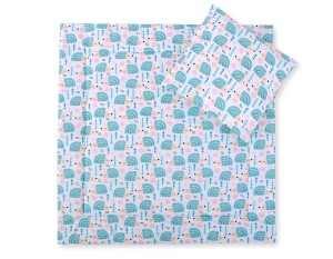 2. Kołderka- zewnętrzna warstwa z tkaniny 100% bawełnianej. Wypełnienie kołderki z atestowanej włókniny silikonowanej, miękkiej i przewiewnej, o specjalnie dobranej gramaturze, tak by kołderka nie była zbyt gruba (co może być szkodliwe dla niemowląt i grozi przegrzaniem dziecka) a jednocześnie zapewniała optymalną miękkość i delikatność. Kołderka jest starannie uszyta, z dodatkowym przeszyciem i przepikowaniem, aby nie odkształcała się nawet po wielu praniach. Pościel idealnie sprawdza się jako kołderka do łóżeczka, wózka lub w późniejszym okresie jako mięciutka mata dla maluszka.
