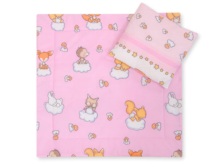 Pościel do wózka z wypełnieniem kołderka i poduszka - Leśne zwierzątka różowe