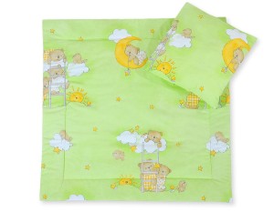 Pościel do wózka z wypełnieniem kołderka i poduszka - Misie na zieleni