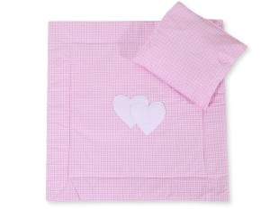 Pościel do wózka z wypełnieniem kołderka i poduszka - Serduszka kratka różowa