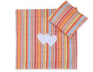 Pościel do wózka z wypełnieniem kołderka i poduszka - Serduszka paseczki pomarańczowe