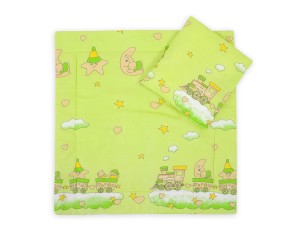Pościel do wózka z wypełnieniem kołderka i poduszka - Wesoły pociąg zielony