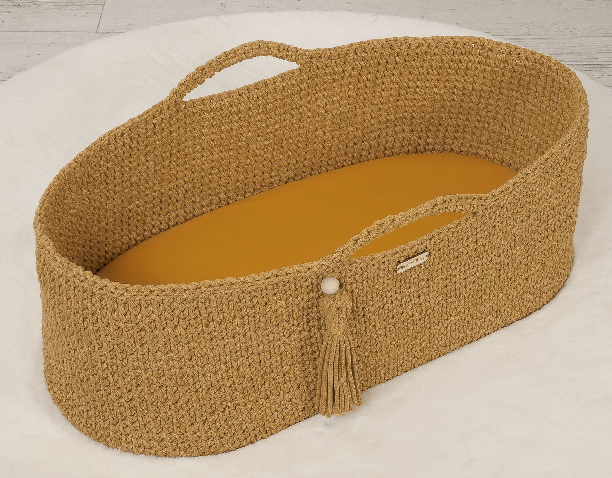 Prześcieradło bawełniane do kosza Mojżesza Boho wózka gondoli 75x35 cm - musztardowe