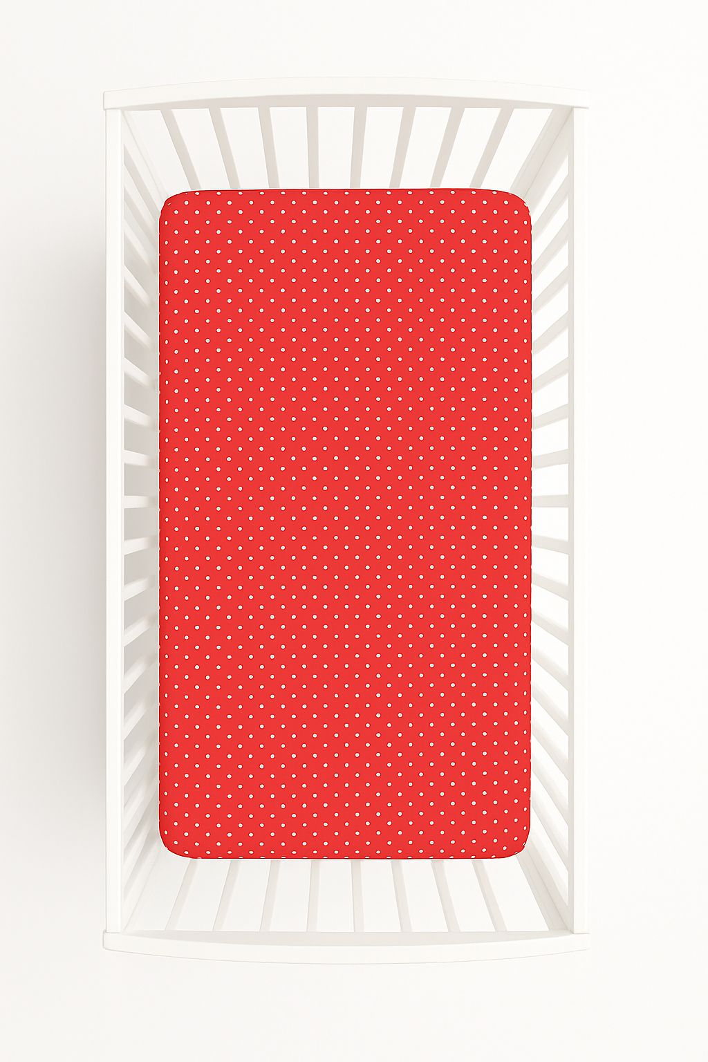 Prześcieradło bawełniane z gumką do łóżeczka 120x60 cm - groszki na czerwieni