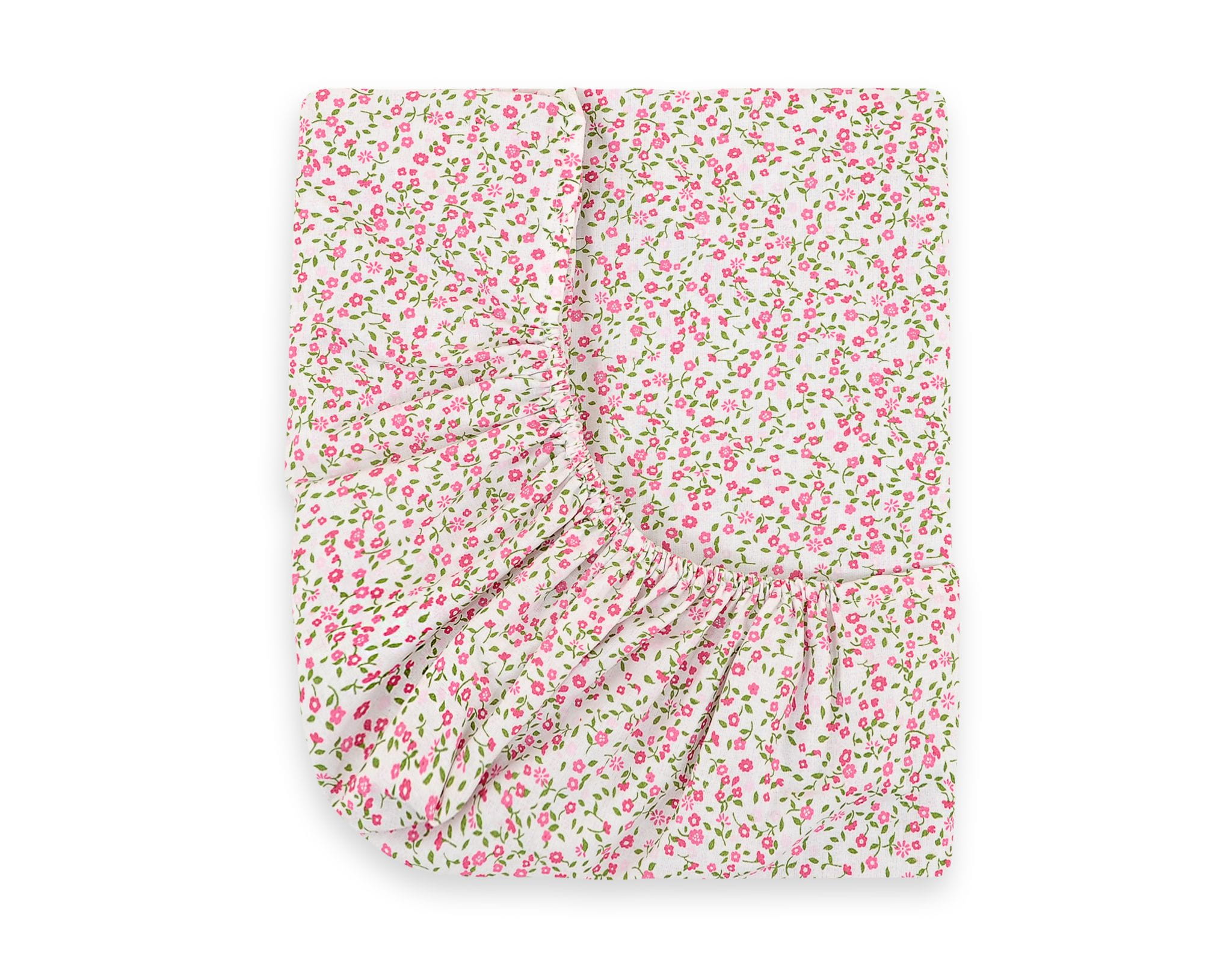 Prześcieradło bawełniane z gumką do łóżeczka 120x60 cm - łączka różowa