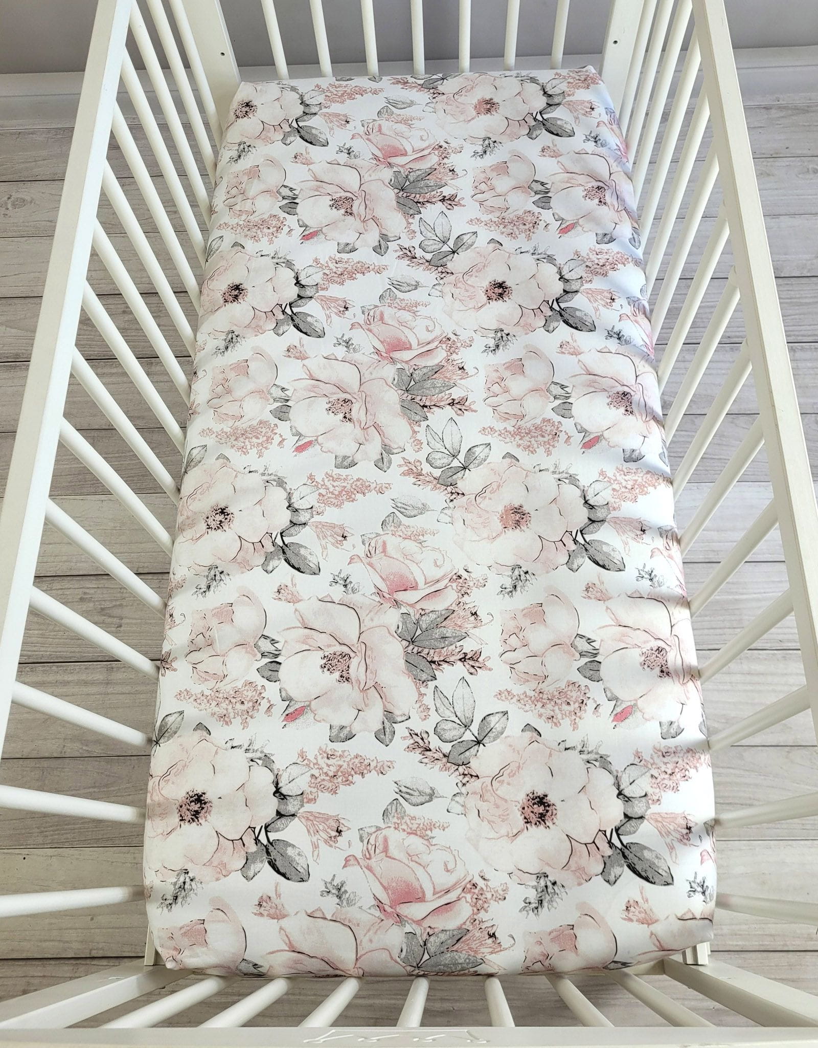 Prześcieradło bawełniane z gumką do łóżeczka 120x60 cm - róże sepia