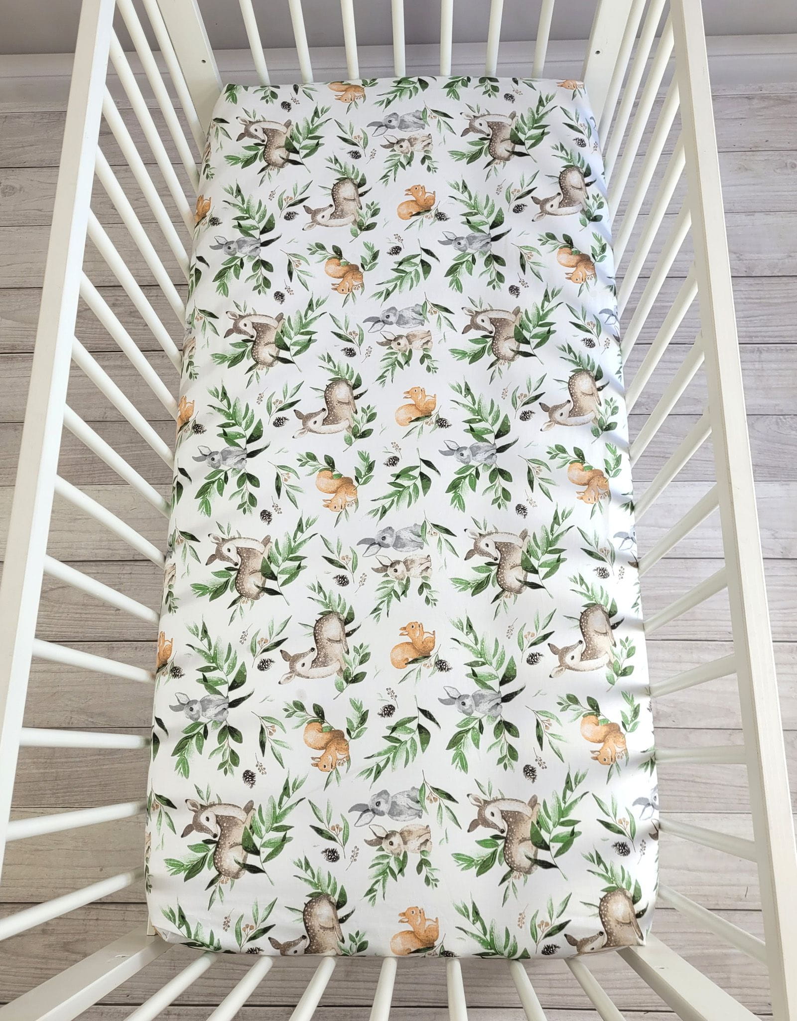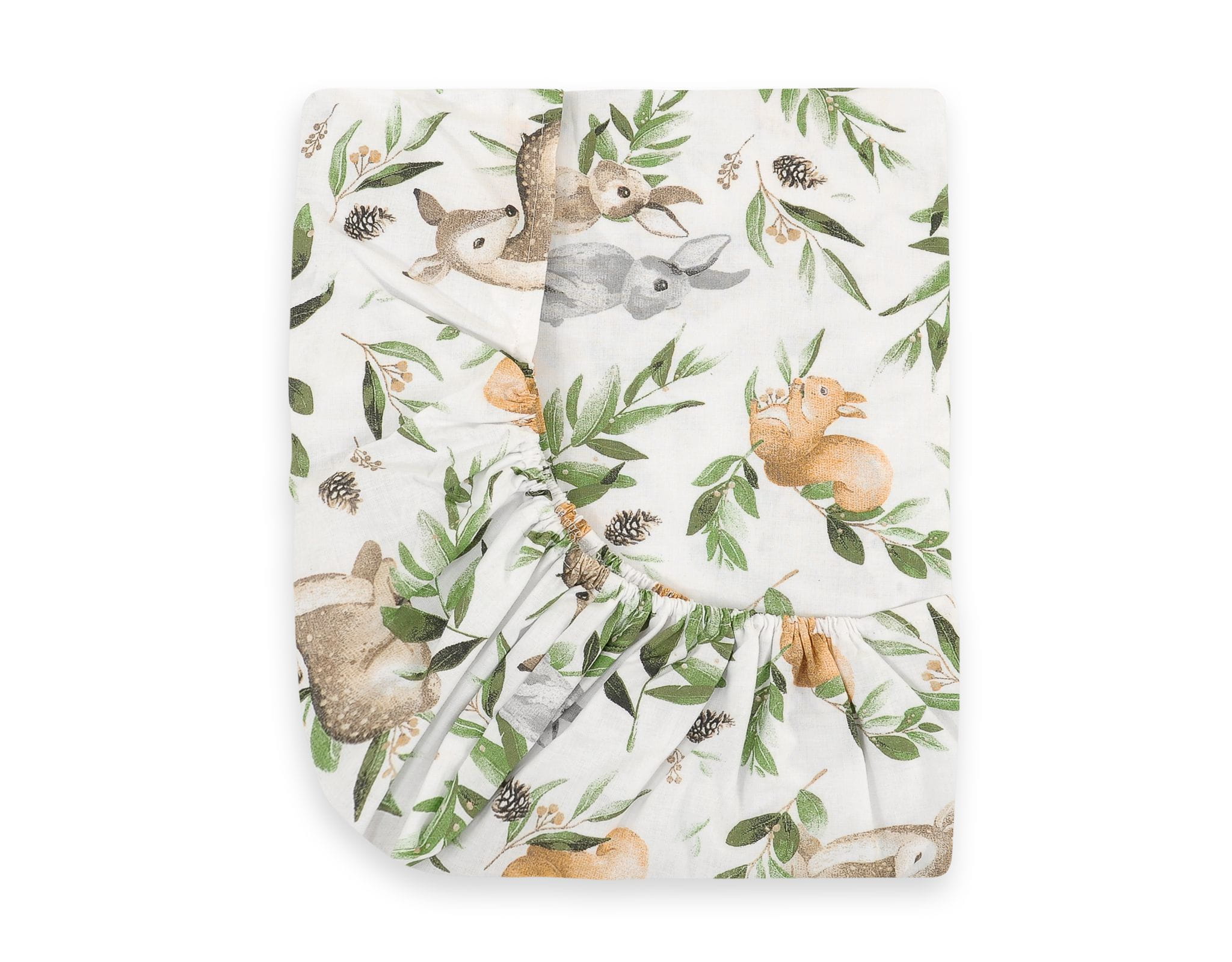Prześcieradło bawełniane z gumką do łóżeczka 120x60 cm - woodland green