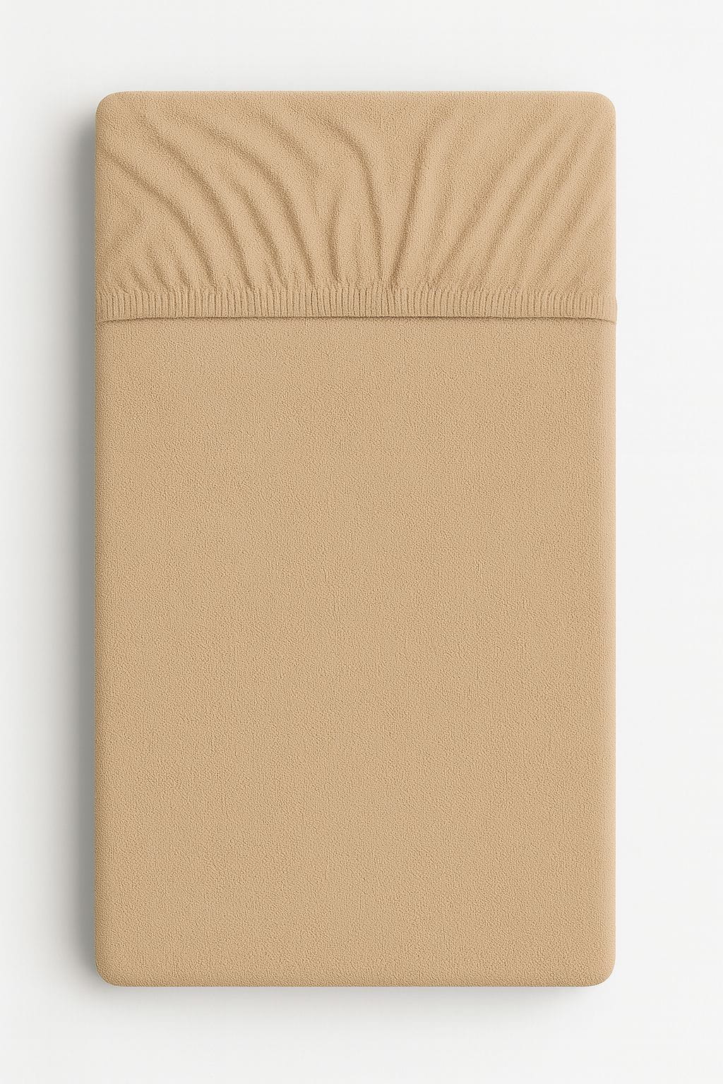 Prześcieradło frotte z gumką do łóżeczka 140x70cm - jasno brązowe