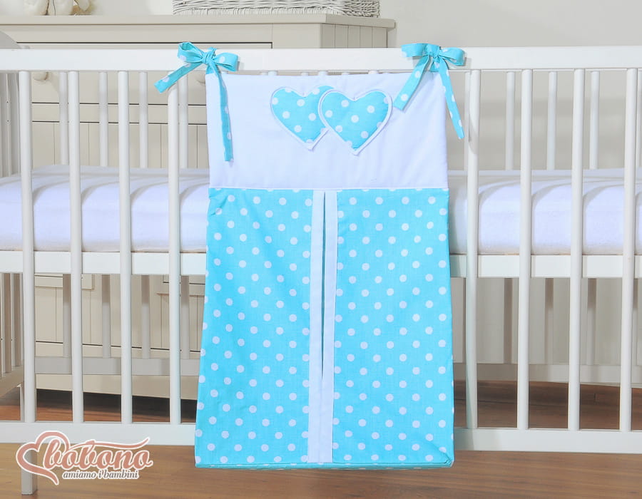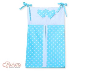 Przybornik- Torba na pampersy- Wiszące serduszka białe grochy na turkusie
