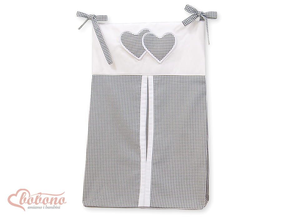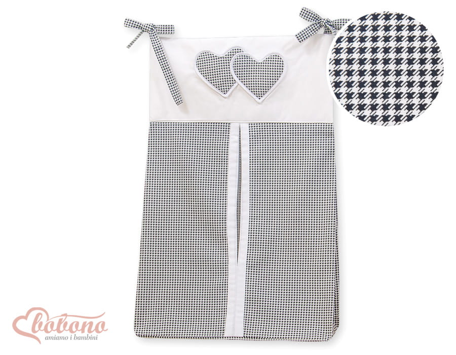 Przybornik- Torba na pampersy- Wiszące serduszka pepitka czarna