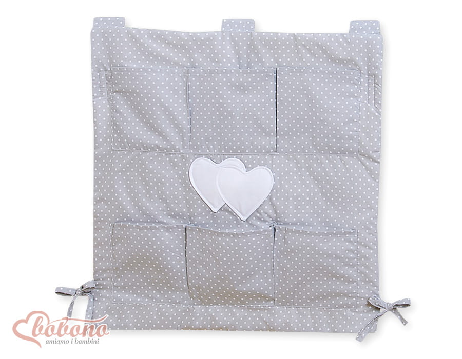 Piękny przybornik z kieszonkami, uniwersalne rozwiązanie do każdego łóżeczka. Pojemne kieszonki zmieszczą wszystkie niezbędne drobiazgi. Wyglad dopasowany do wybranej kolekcji pościeli, będzie ładnym uzupełnienem wyposażenia.