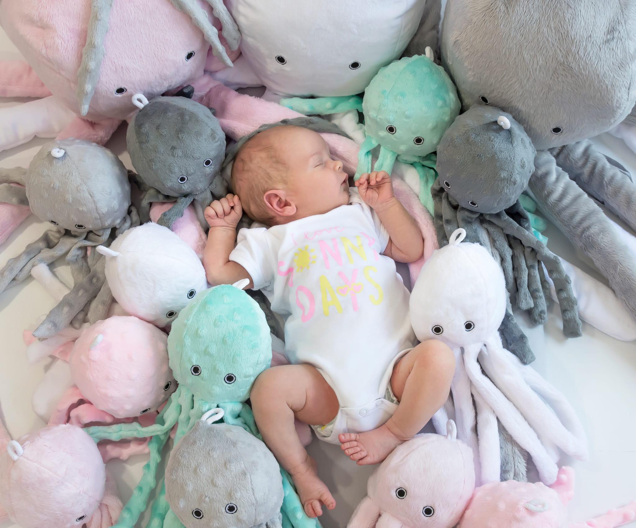 Przytulanka dla dzieci OŚMIORNICA z grzechotką