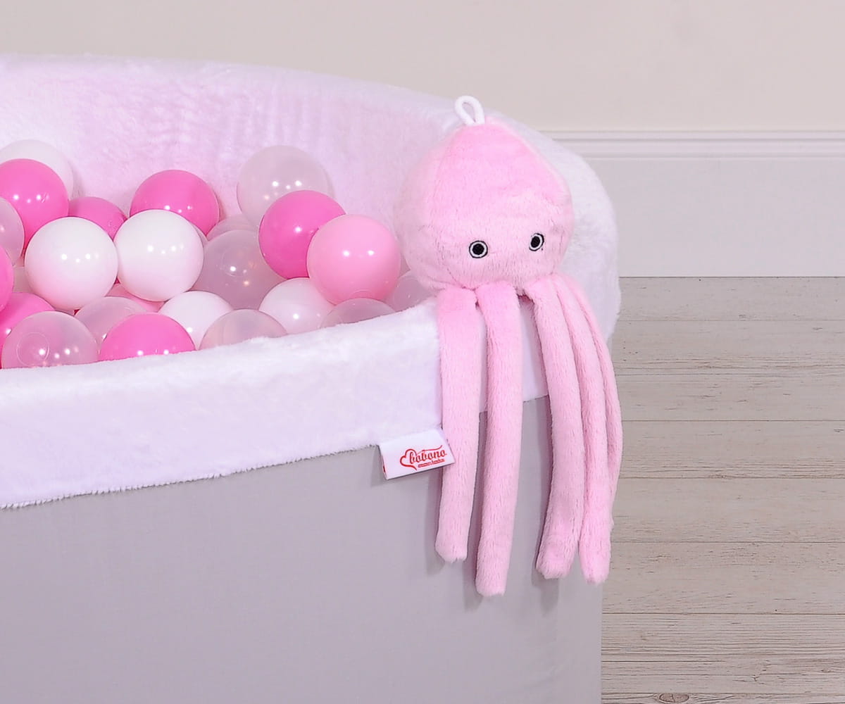 Cudnie miękka i delikatna przytulanka dla niemowląt. Ośmiorniczka jest idealna do zabawy i przytulania dla każdego Maluszka. Ramiona ośmiorniczki są wygodne do uchwycenia przez malutkie rączki dziecka.