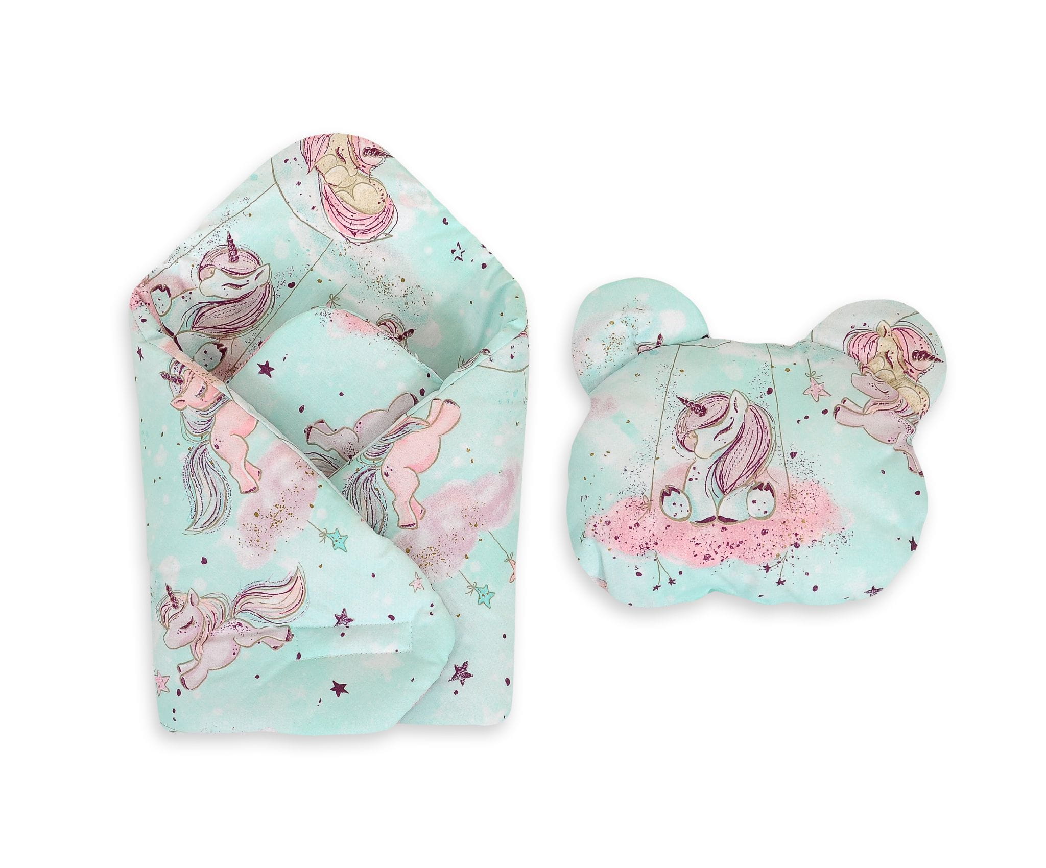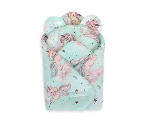 Rożek dla lalek z poduszką miś - jednorożce miętowe