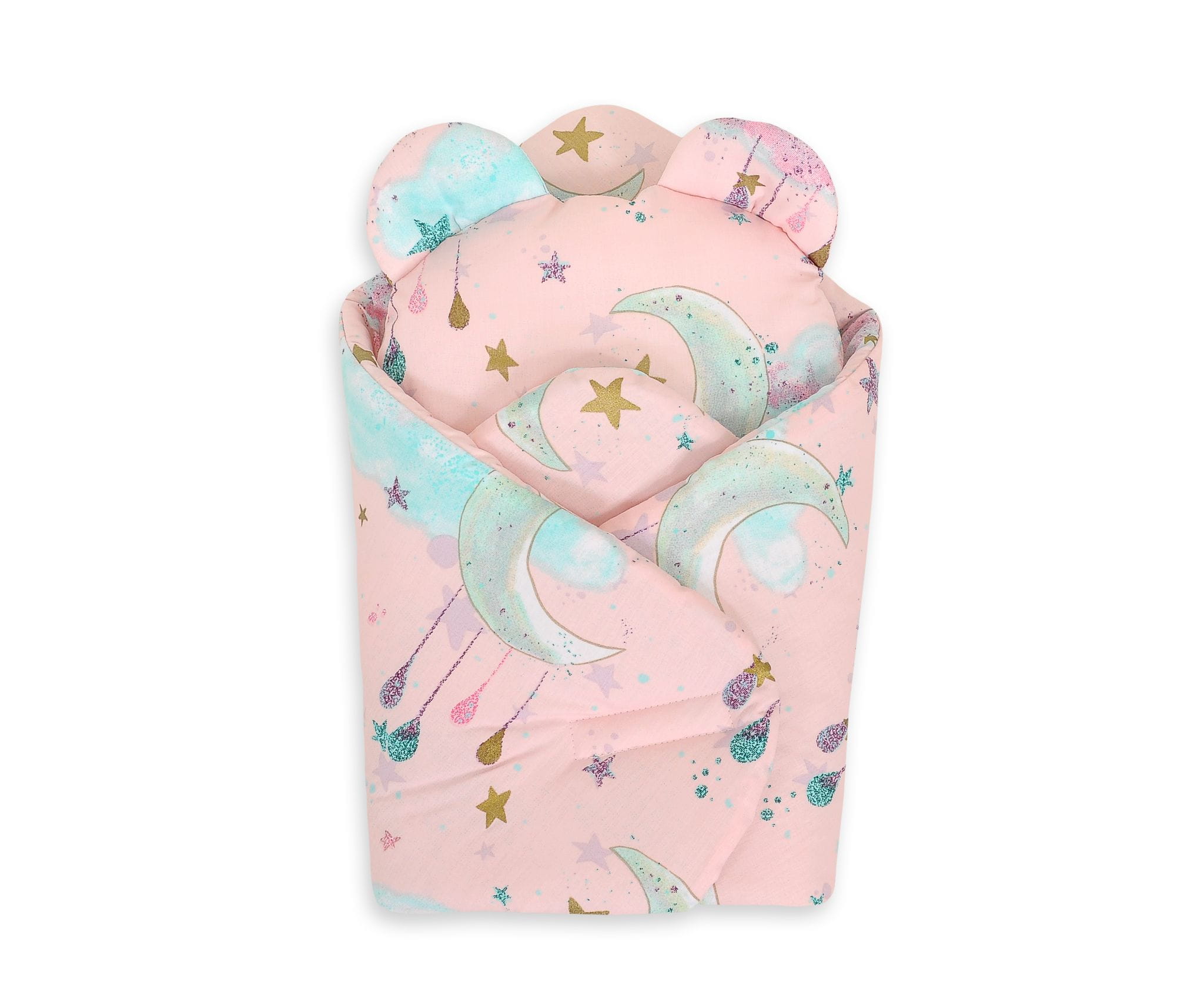Rożek dla lalek z poduszką miś - księżyce różowe