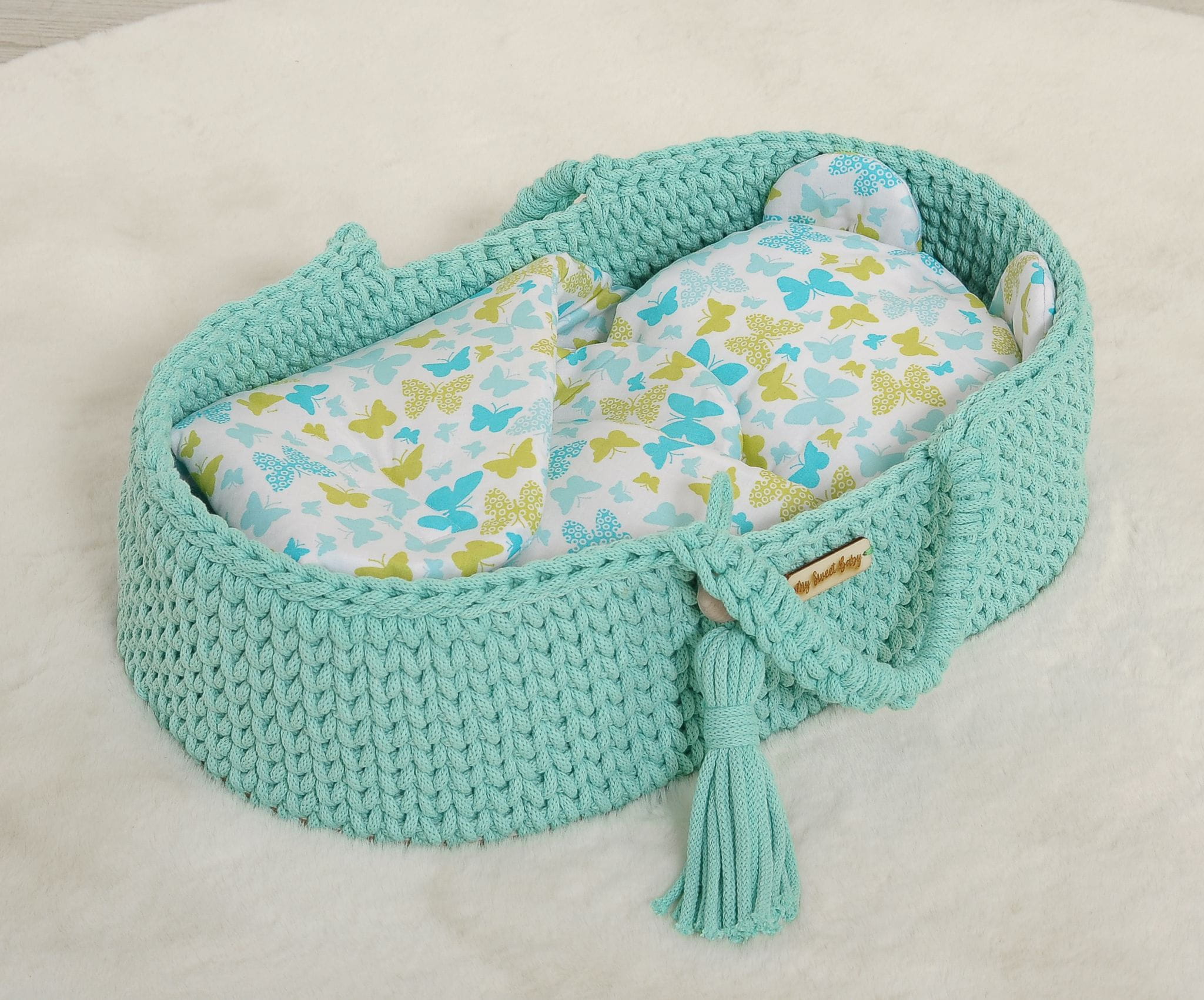 Rożek dla lalek z poduszką miś - motylki miętowe