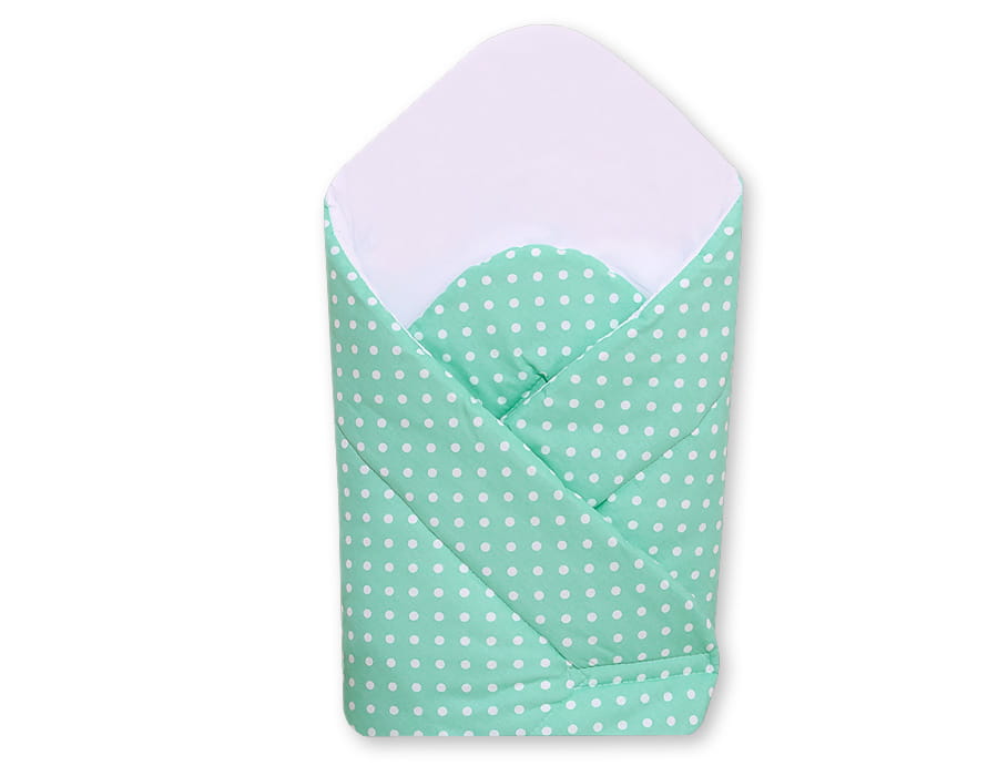 Rożek dla niemowląt bawełniany z wkładką usztywniającą - białe grochy na miętowym