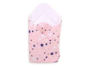 Rożek dla niemowląt miękki - gwiazdki granatowo-białe na różowym tle