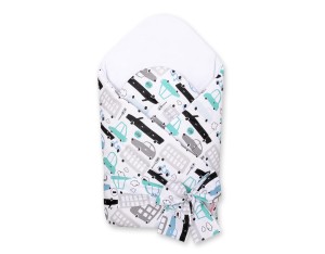 Rożek dla niemowląt usztywniany z wiązaniem - autka szaro-turkusowe
