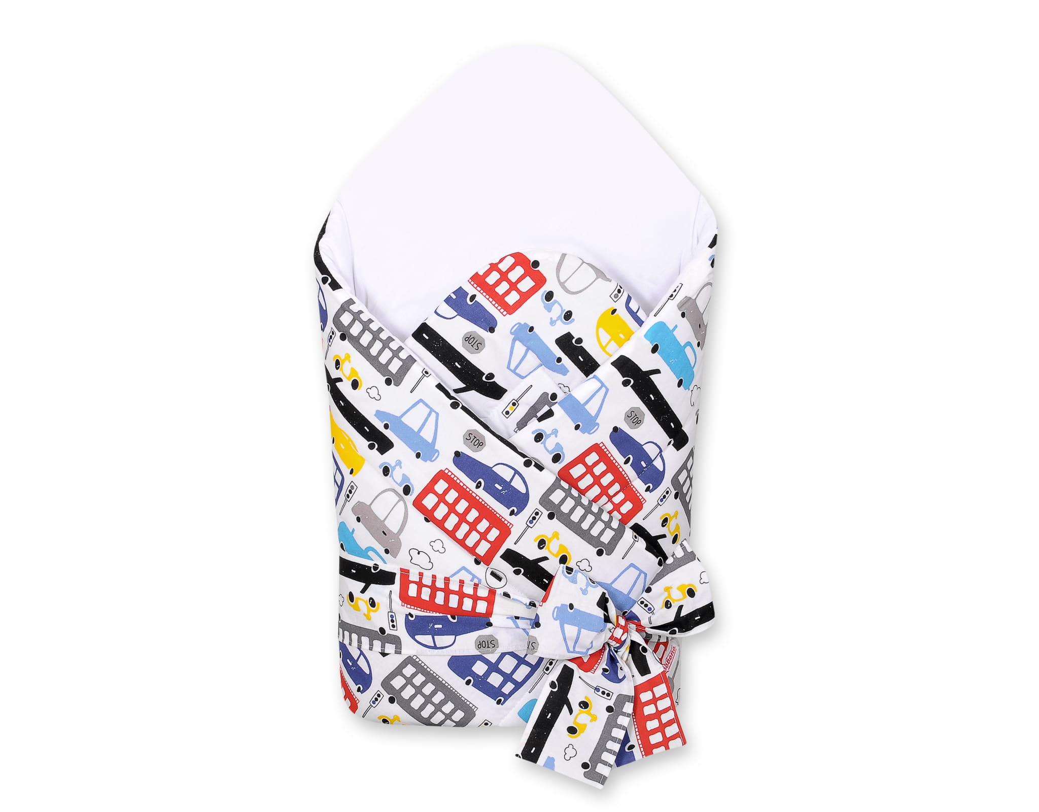 Rożek dla niemowląt z wiązaniem 2w1 usztywniany i miękki - autka kolorowe