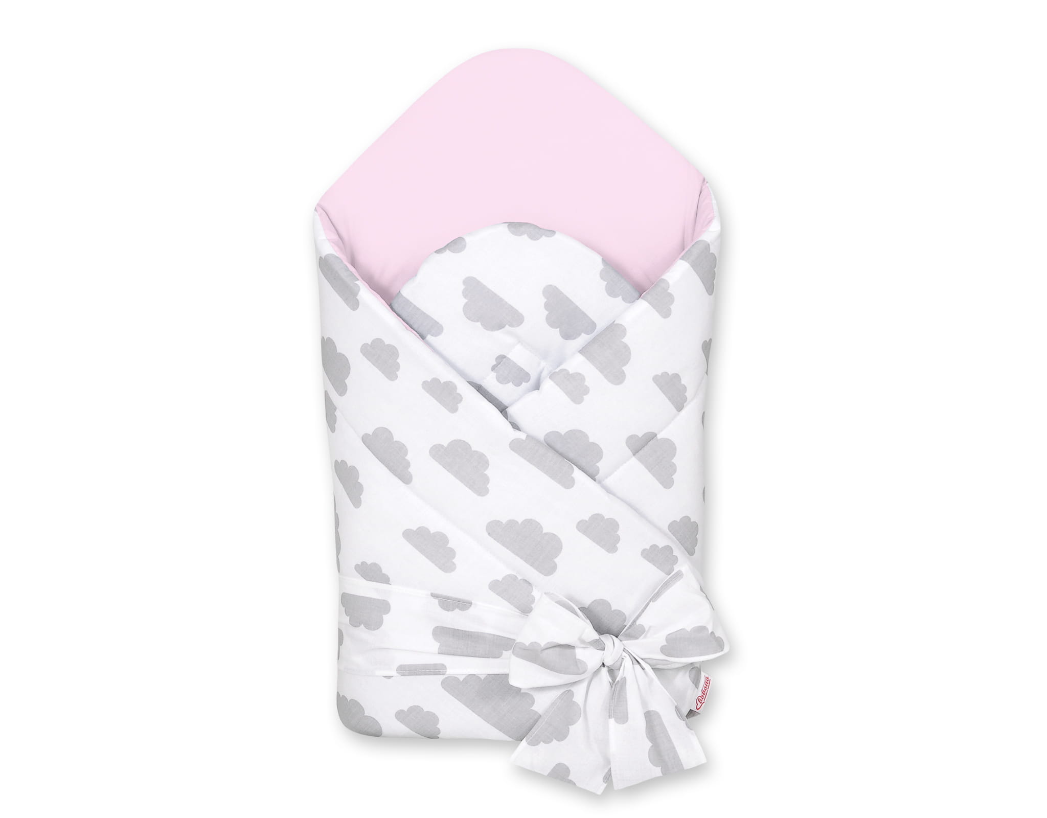 Rożek dla niemowląt z wiązaniem 2w1 usztywniany i miękki - chmurki szare/różowy
