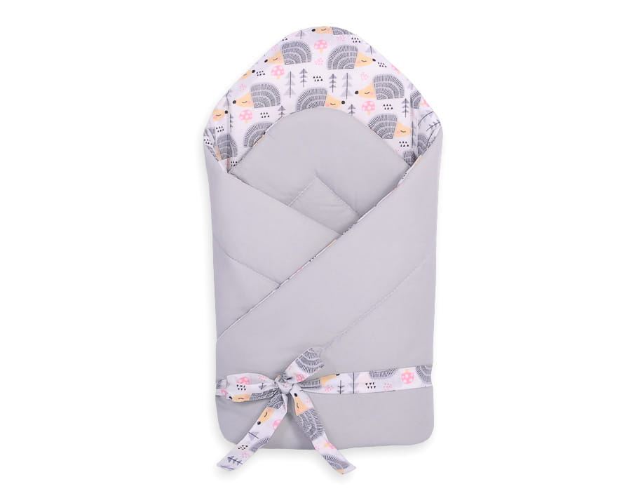 Rożek dla niemowląt z wiązaniem 2w1 usztywniany i miękki - jeżyki szare