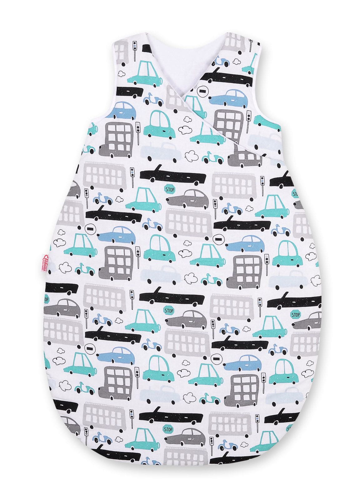 Śpiworek dla dzieci bawełniany M 3-12 mcy TOG 2.5 całoroczny ocieplany - autka szaro-turkusowe