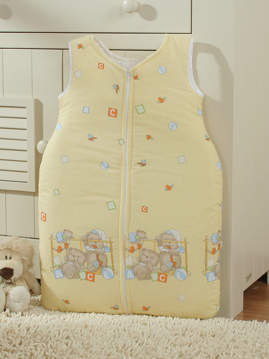 Śpiworek dla dzieci bawełniany M 6-12 mcy TOG 2.5 całoroczny misie w łóżeczku na żółtym