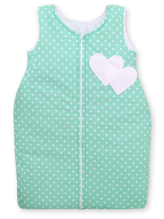 Śpiworek dla dzieci bawełniany M 6-12 mcy TOG 2.5 całoroczny ocieplany serduszka grochy na mięcie