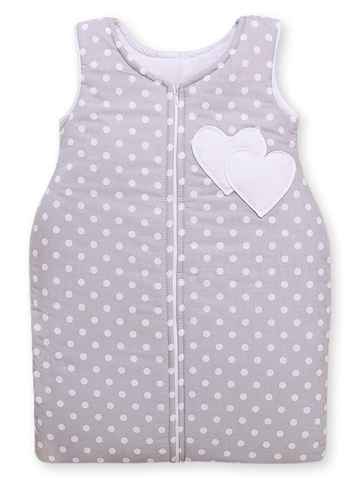 Śpiworek dla dzieci bawełniany M 6-12 mcy TOG 2.5 całoroczny ocieplany serduszka grochy na szarym