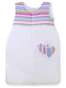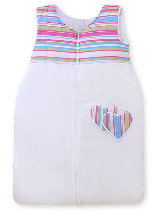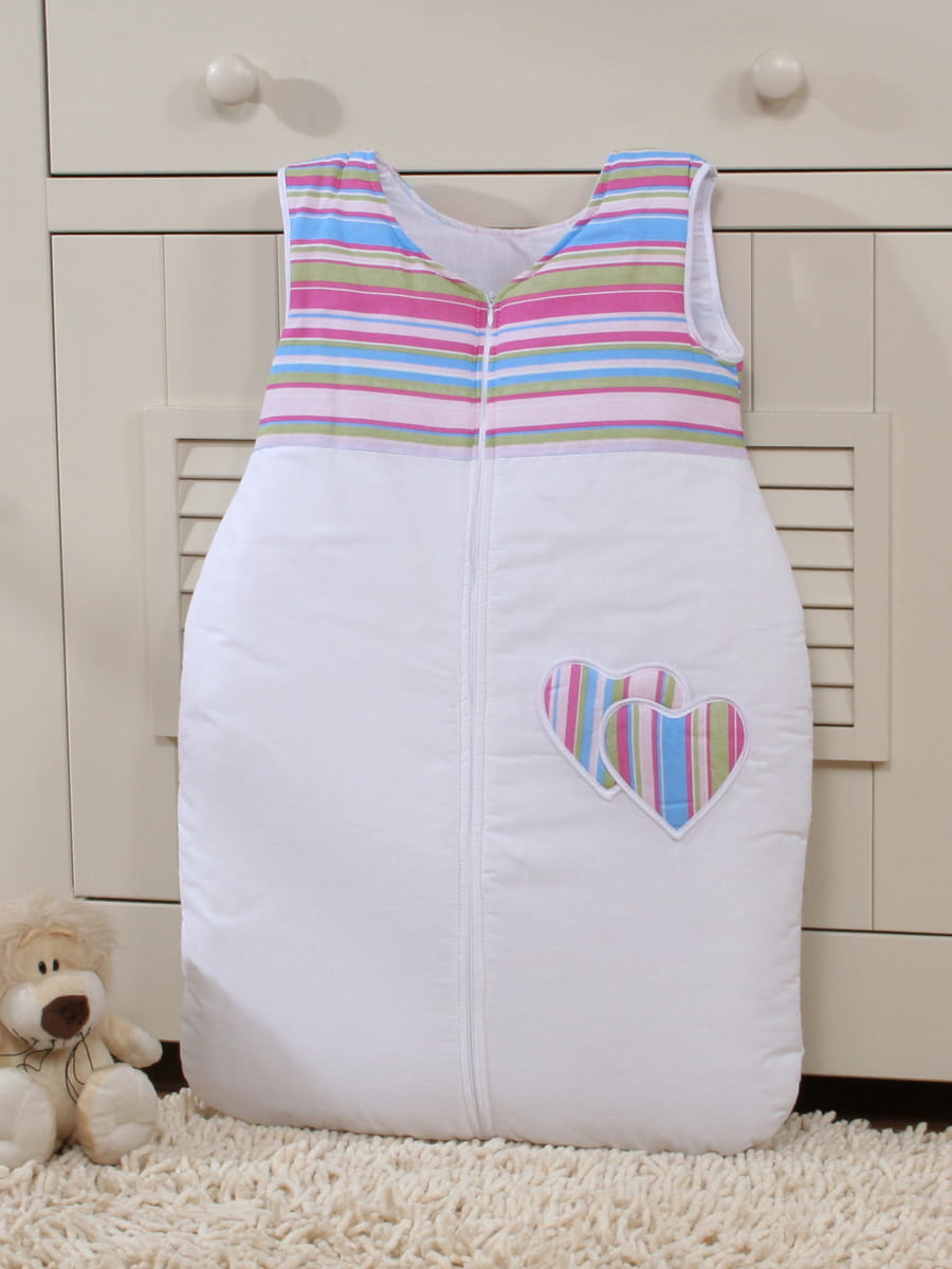 Śpiworek dla dzieci bawełniany M 6-12 mcy TOG 2.5 całoroczny ocieplany serduszka paseczki fioletowe