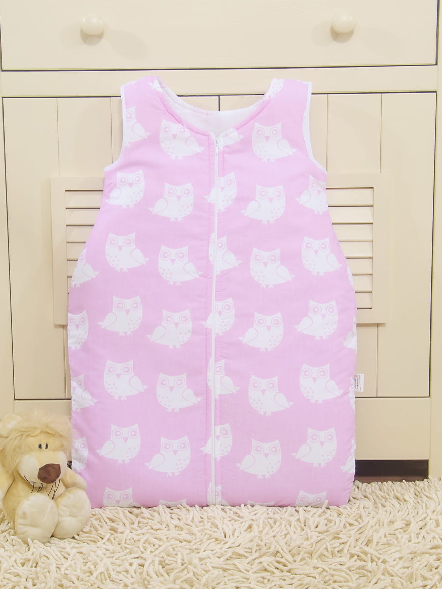 Śpiworek dla dzieci bawełniany M 6-12 mcy TOG 2.5 całoroczny ocieplany sowy różowe