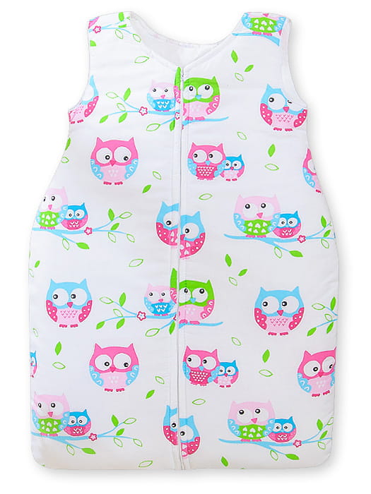 Śpiworek dla dzieci bawełniany M 6-12 mcy TOG 2.5 całoroczny sowy na bieli