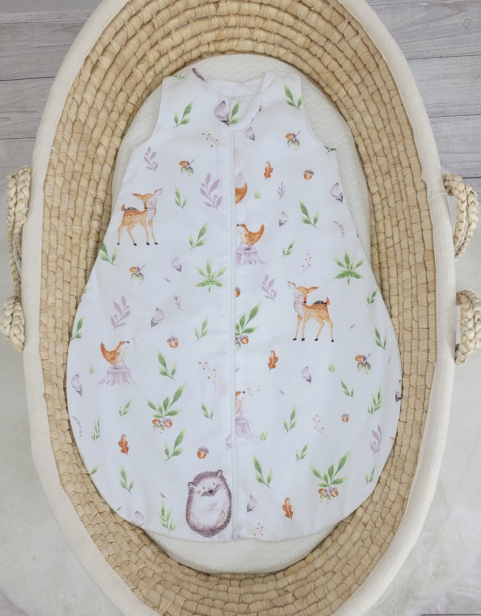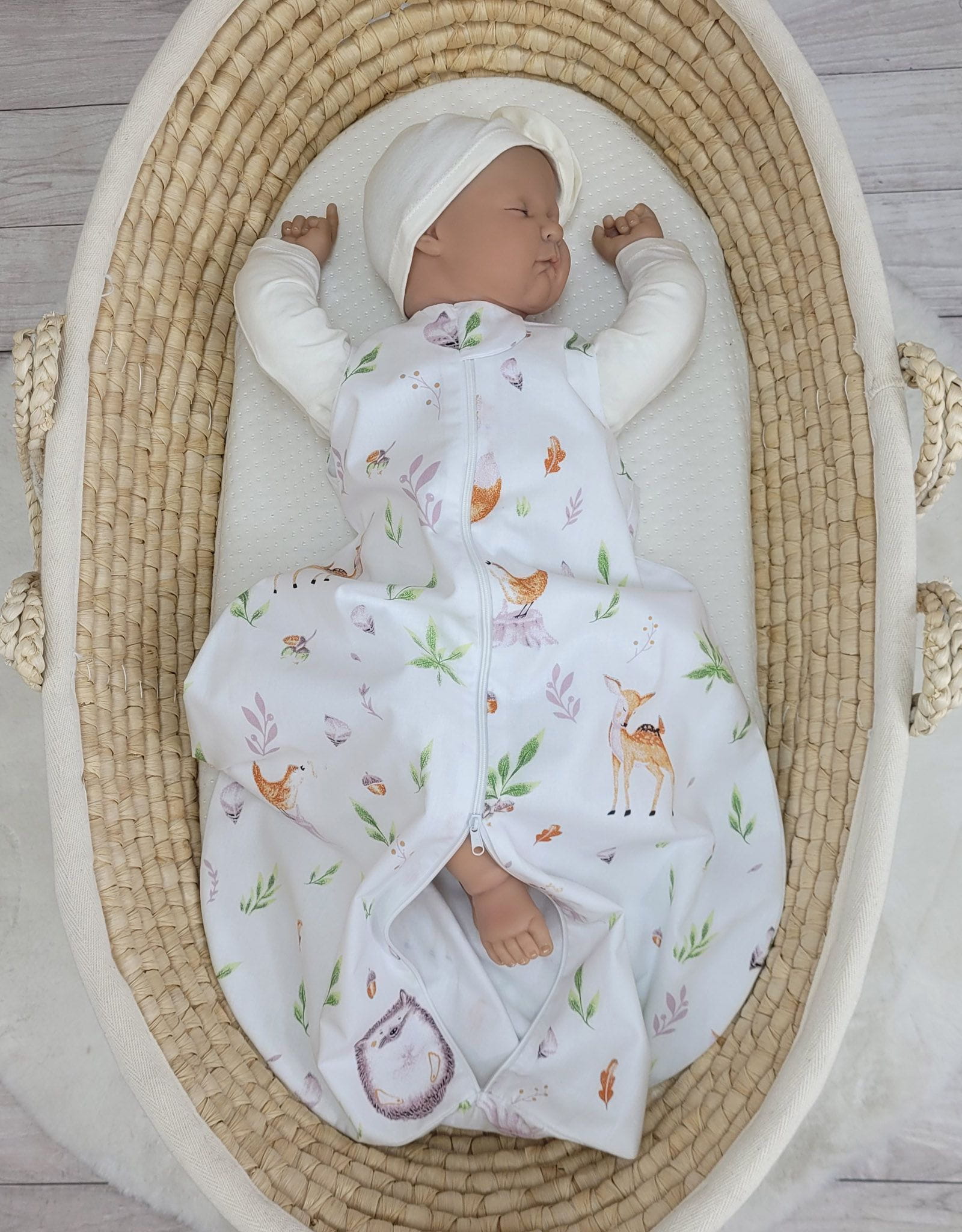 Śpiworek dla dzieci bawełniany zaokrąglony S 0-6 mcy letni TOG 1.0 - leśna delikatność