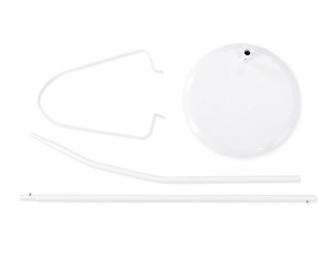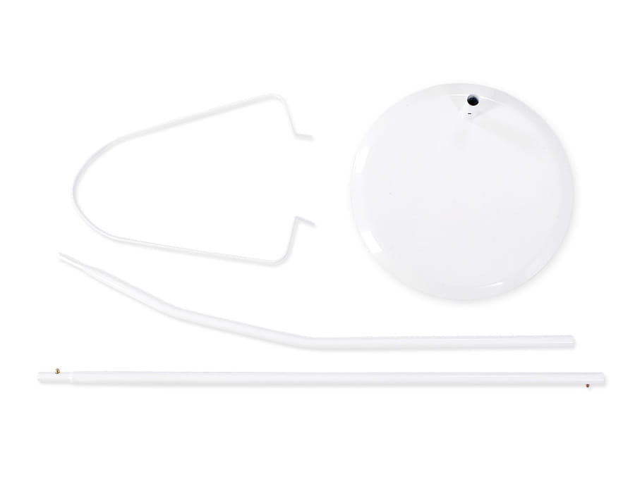 Stelaż wolnostojący jest stawiany koło łóżeczka, nie wymaga przykręcania. Składa się z dwóch rurek, połączonych ze sobą za pomocą ‘stopera-zatrzasku’. Górna rurka łączy się z owalnym drutem, na którym umieszczony zostaje baldachim. Rurka dolna łączy się z podstawą w kształcie koła, również przy pomocy ‘stopera-zatrzasku’.