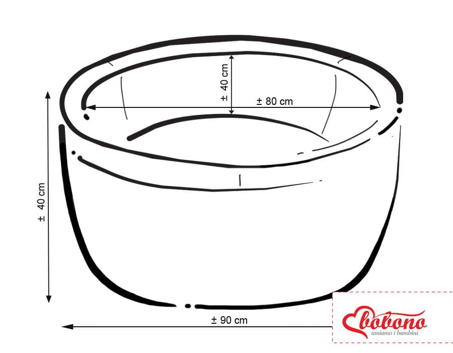 Basen jest okrągły o średnicy 90cm. Wysokość boku 40cm. Wykonany w całości z miękkiej pianki. Pokrowiec wykonany z mięciutkiego minky w kropki. Zapinany na zamki błyskawiczne, dzięki czemu łatwo zdjąć go do prania.