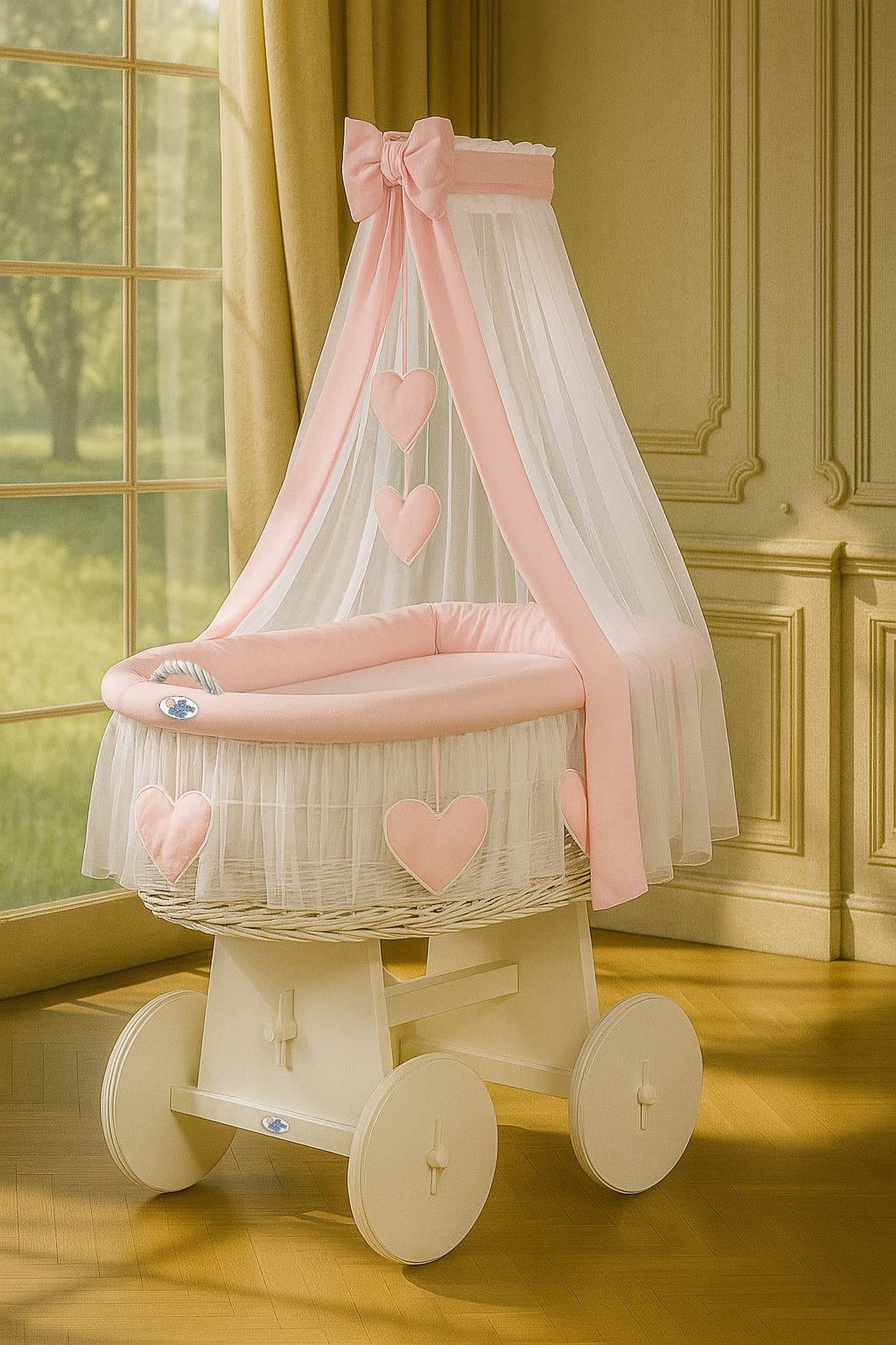 Kosz Mojżesza z wikliny z baldachimem – MY SWEET BABY | Naturalny, ręcznie robiony. Wyjątkowy produkt premium dla Twojego dziecka