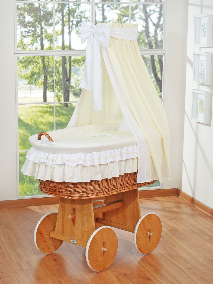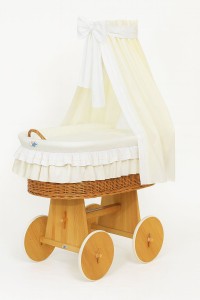Wiklinowy kosz Mojżesza z baldachimem Bellamy - naturalny + kremowa pościel