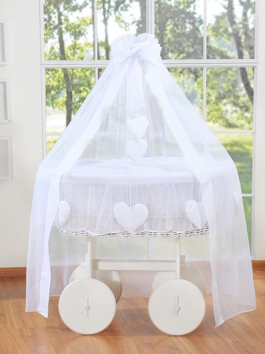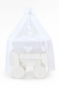 Wiklinowy kosz Mojżesza z baldachimem Deluxe Amelia - biały + biała pościel