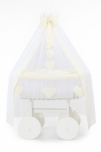Wiklinowy kosz Mojżesza z baldachimem Deluxe Amelia - biały + kremowa pościel