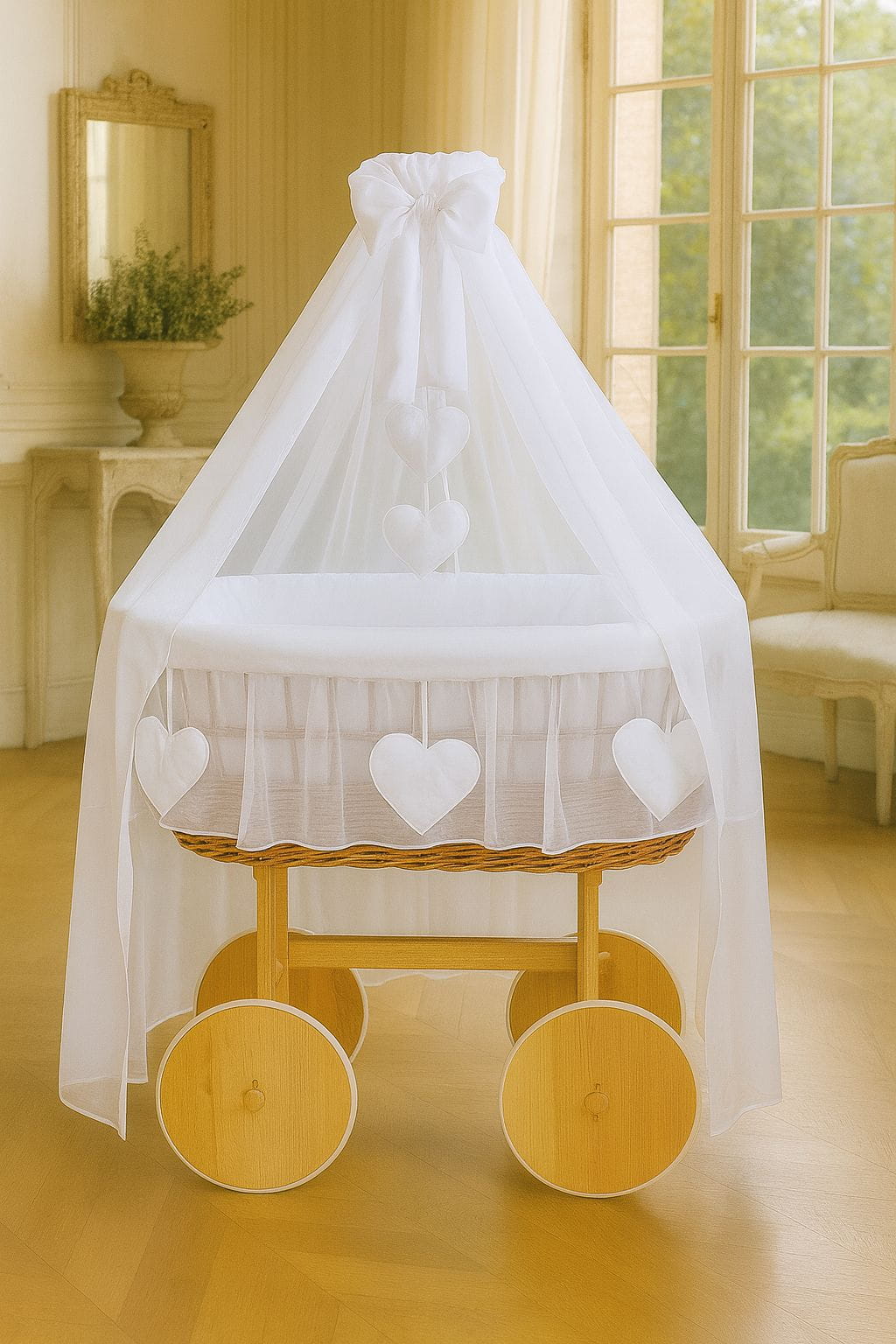 Kosz Mojżesza z wikliny z baldachimem – MY SWEET BABY | Naturalny, ręcznie robiony. Wyjątkowy produkt premium dla Twojego dziecka