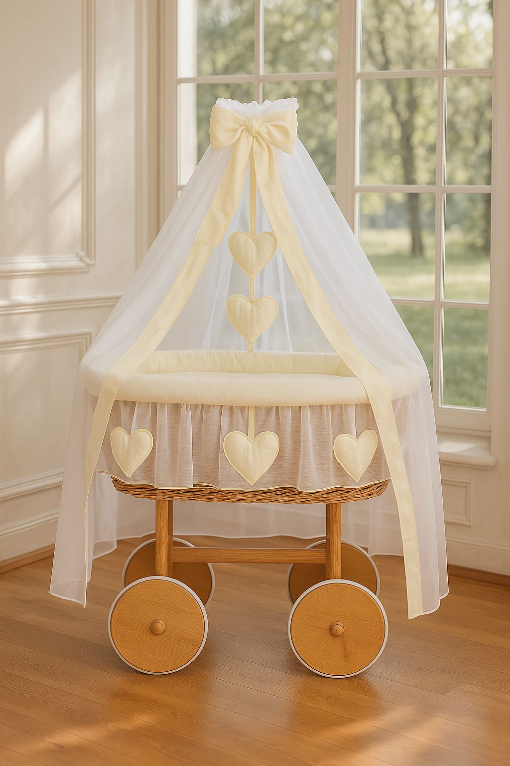 Kosz Mojżesza z wikliny z baldachimem – MY SWEET BABY | Naturalny, ręcznie robiony. Wyjątkowy produkt premium dla Twojego dziecka